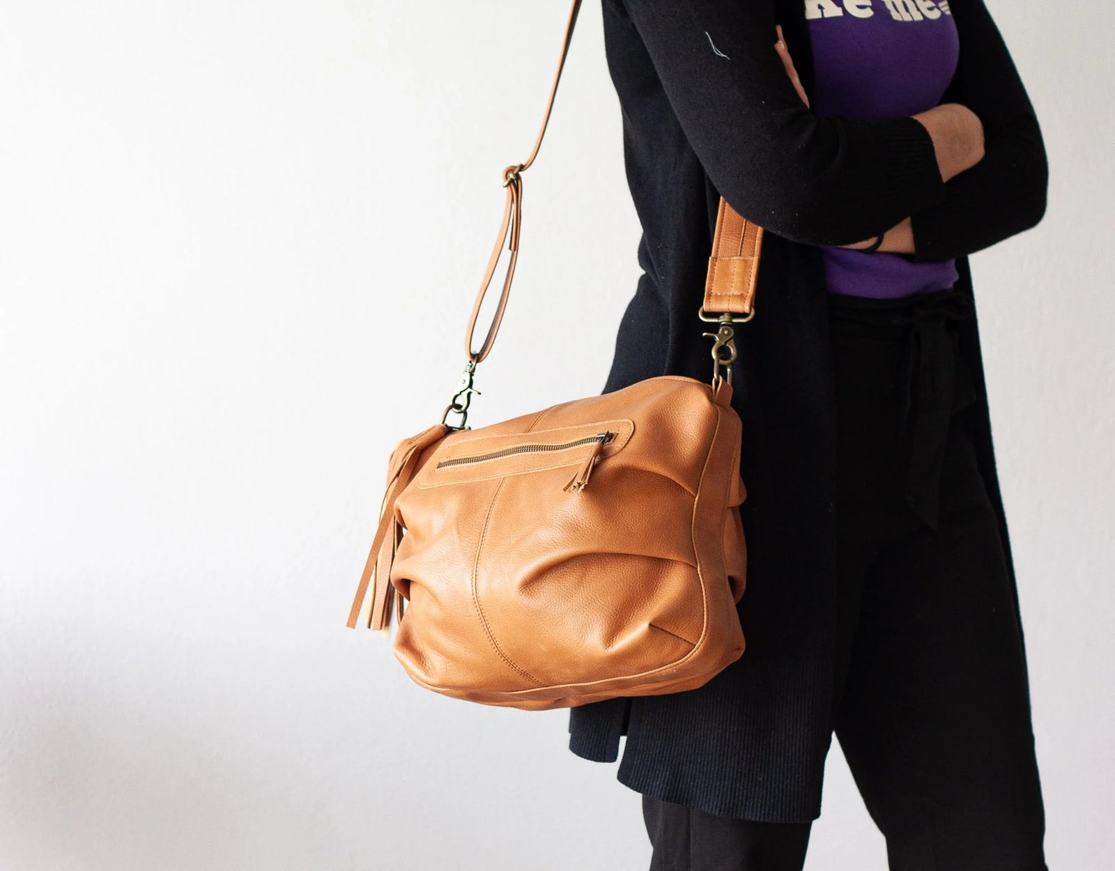 This satchel bag is designed to accommodate everyday essentials by merging functionality and understated looks. The main compartment has a zipper on top and allows you to hold all your essentials inside without overwhelming your mood.With its roomy interior, it can hold your oversized phone or your big wallet. The exterior zipper pocket is deep enough for anything you want to have quick access to.