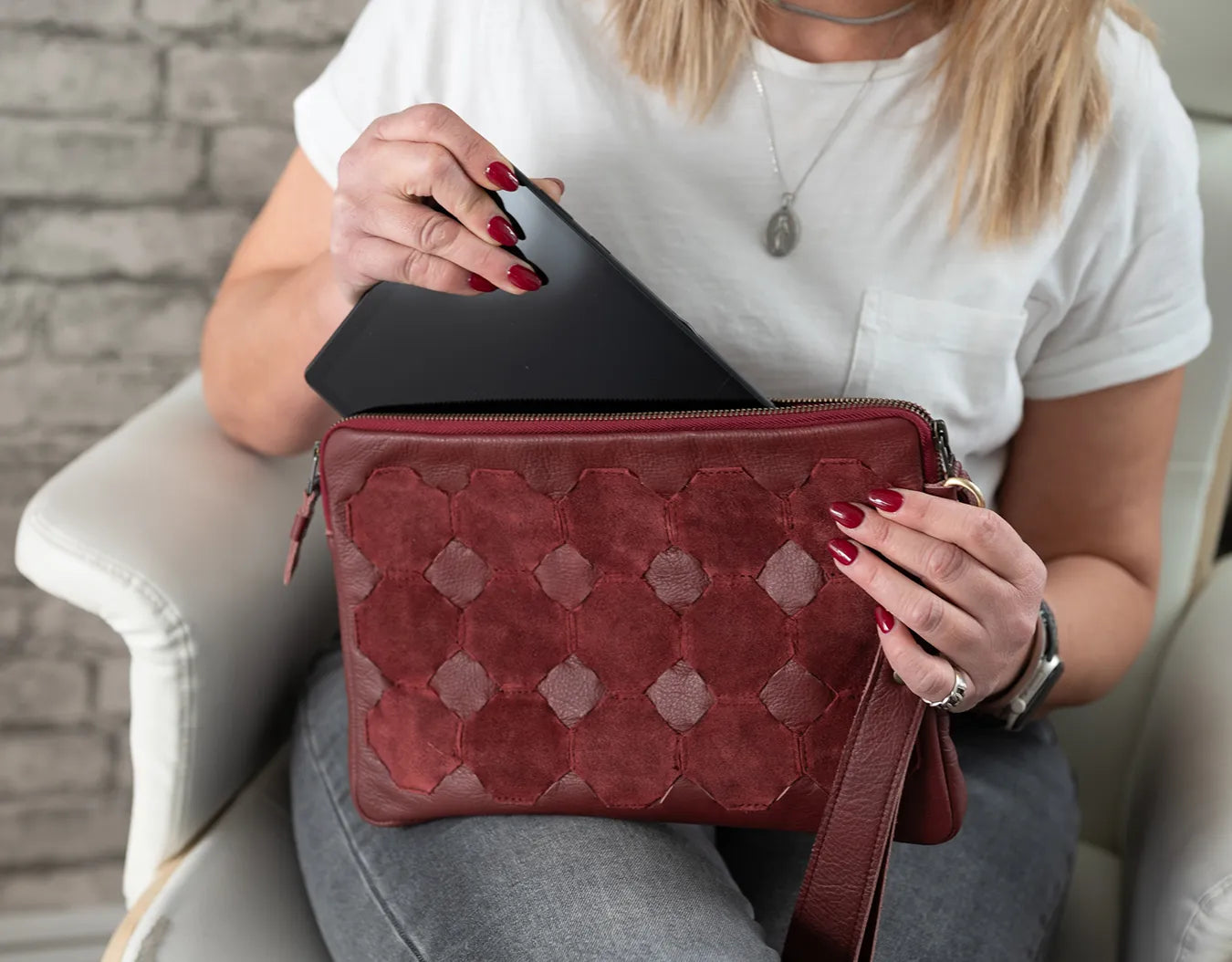 Smart, stylish, and totally functional—this piece is more than just a clutch