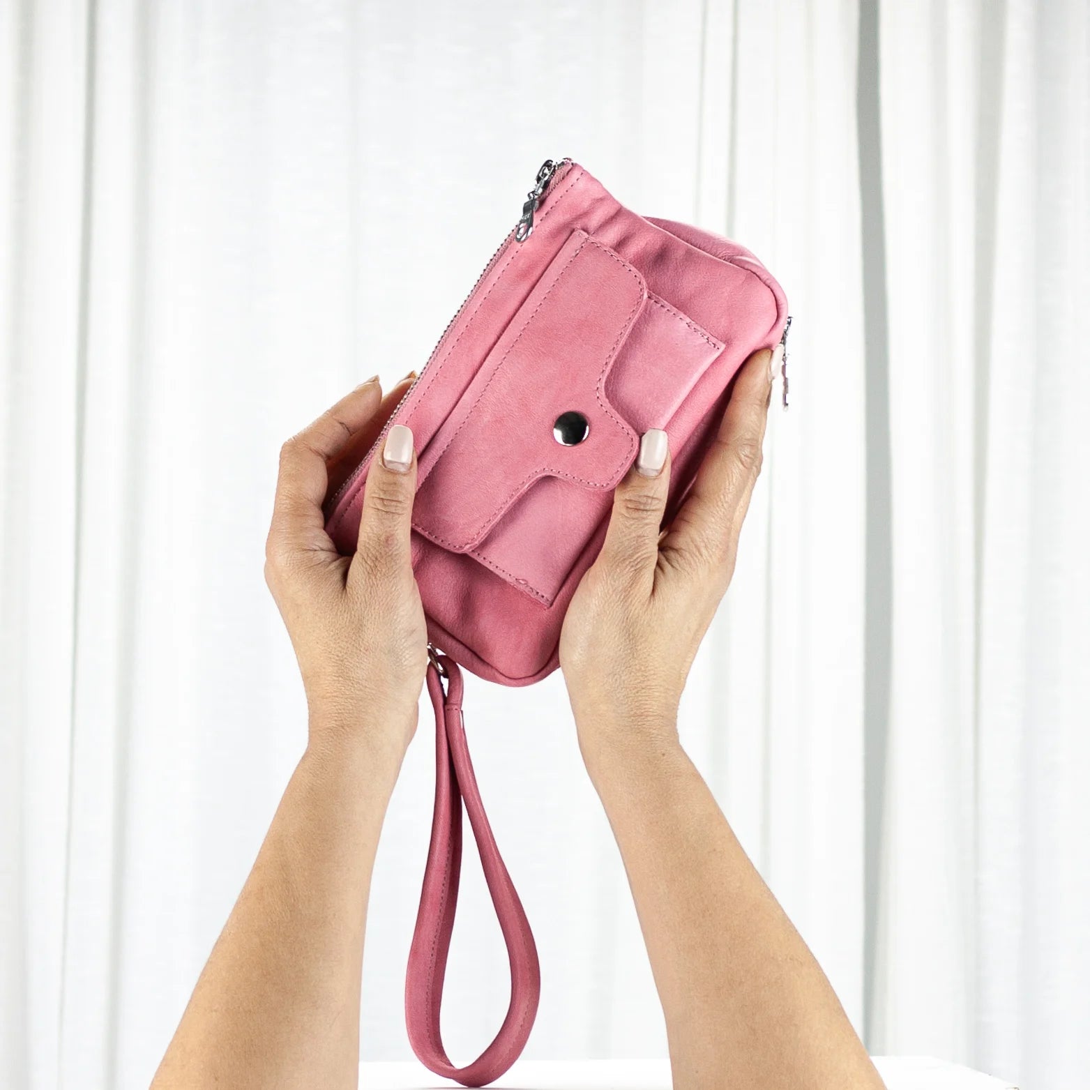 This wristlet wallet is the perfect mix of style and function. On the front, there’s a handy little pocket with a snap closure that’s great for coins or anything small you want to grab quickly. Flip it over and you’ll find a zipper pocket on the back, plus another zippered compartment at the bottom that’s roomy enough for your phone, passport, or other must-haves. Inside, there are four slip pockets to keep your cards organized. It also comes with a detachable wristlet strap, so you can carry it on its own or toss it into your bag.
