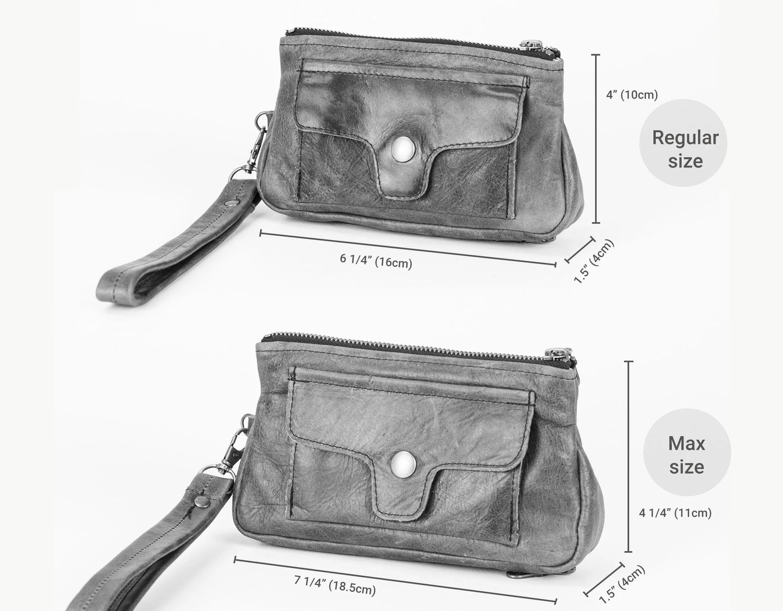 •Max size: Width 7 1/4" (18.5cm), Height 4 1/4" (11cm) and Depth 1.5" (4cm), fits phones in the bottom pocket up to 7"