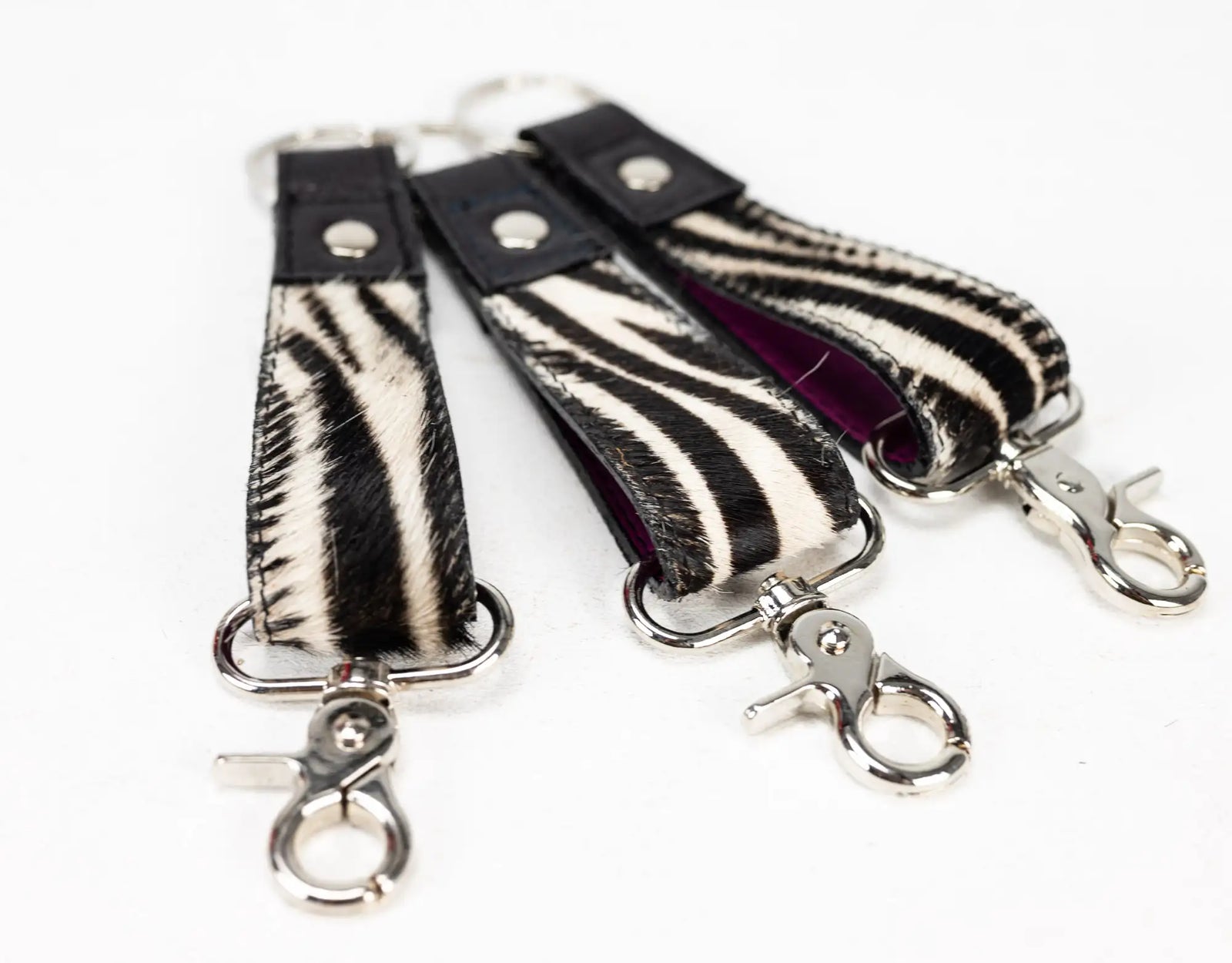 $17.00 USD $20.00 USDLeather handwoven keyring with clip - Zebra cowhide