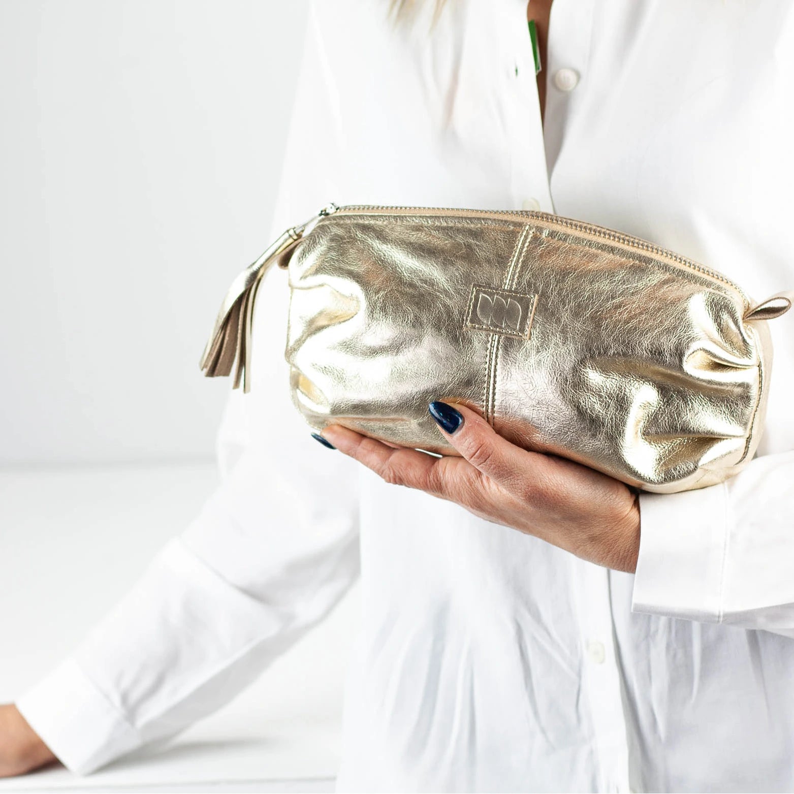 A chic cosmetic pouch that doubles as a stylish clutch.