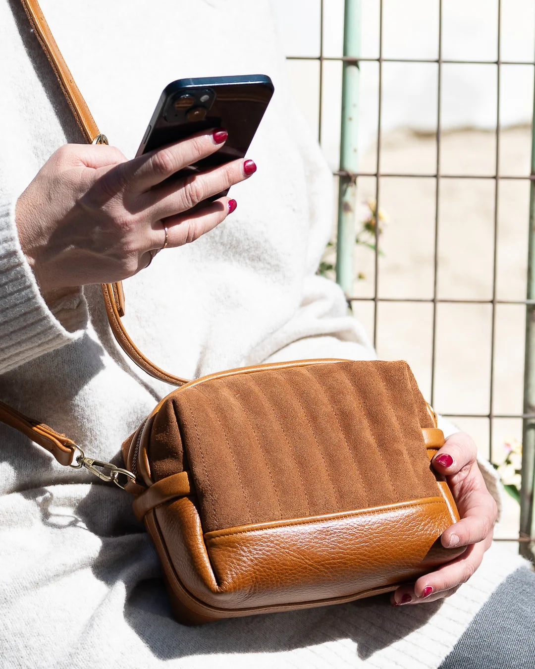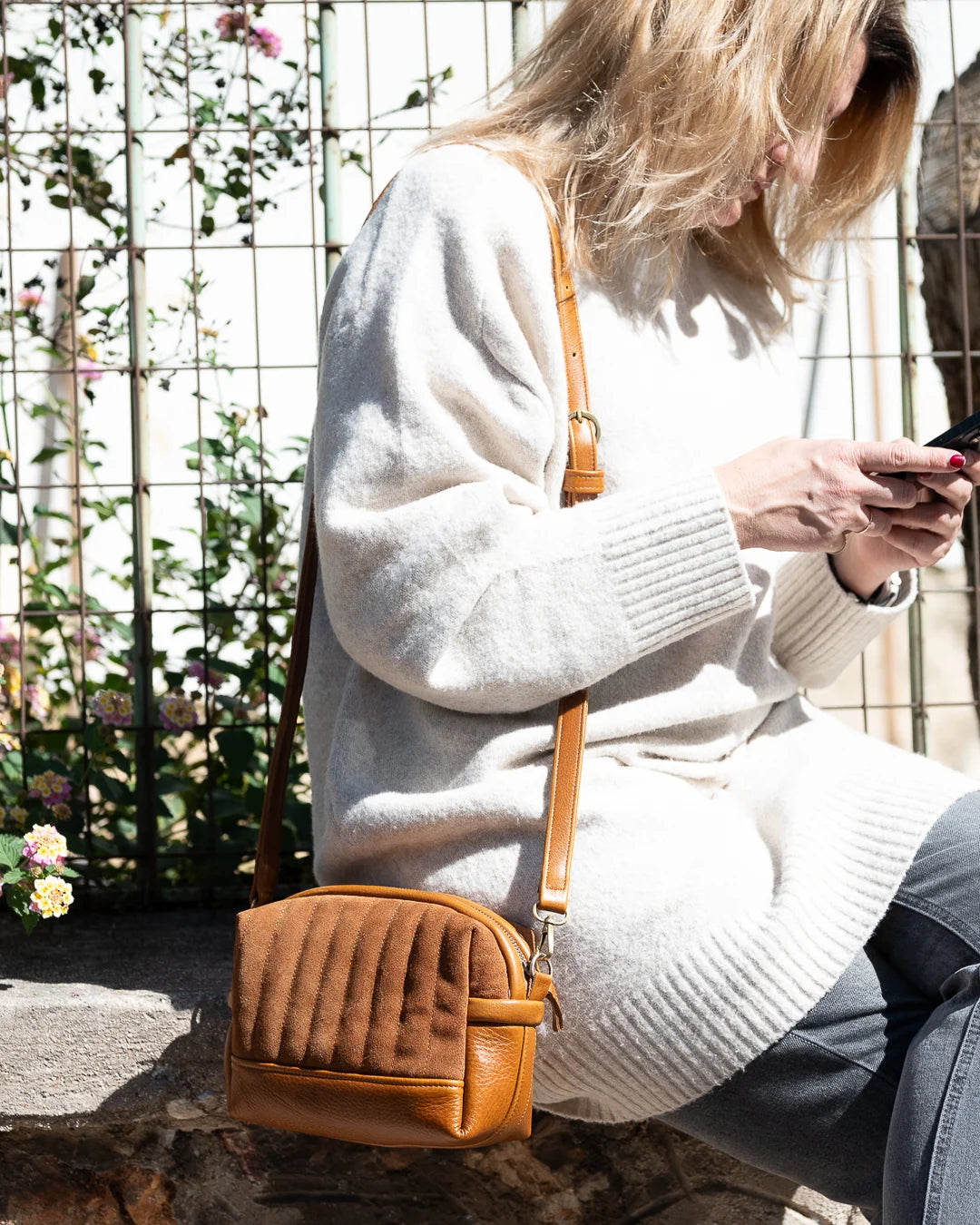 Designed for versatility, it can be worn crossbody, over the shoulder, or as a detached clutch