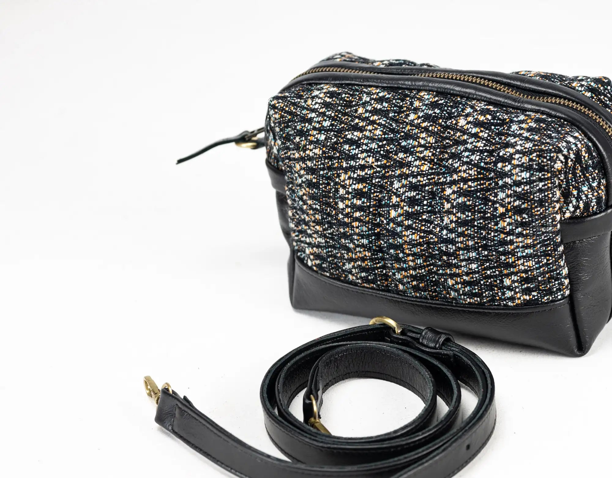 Designed for versatility, it can be worn crossbody, over the shoulder, or as a detached clutch